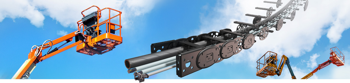 Aerial work platforms and cherry pickers offer little space for safe energy supply, so users like to use energy chains made of high-performance plastics or plastic-steel hybrid energy chains from igus to protect their over-taxed cables and hoses.